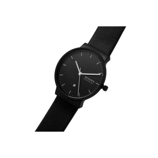 Battery Type : silver oxide | Primary Material : Stainless Steel | Case depth approx : 7.40mm | Case width approx : 40.00mm | Case shape : Circle | Strap type : Leather strap | Strap colour : Black | Clasp type : Strap buckle | Dial colour : Black | Glass : Mineral | Movement : Quartz | Movement Source : Japan | Water Resistance : 50 metres | Guarantee : 2 Years Limited