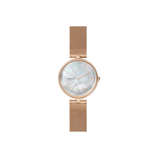 Battery Type : lithium ion | Primary Material : Stainless Steel | Case depth approx : 7.00mm | Case width approx : 36.00mm | Case shape : Circle | Strap type : Mesh Bracelet | Strap colour : Rose Gold | Clasp type : Sliding buckle | Dial colour : White mother of pearl | Glass : Mineral | Movement : Solar | Movement Source : China | Water Resistance : 50 metres | Includes date function | Guarantee : 2 years