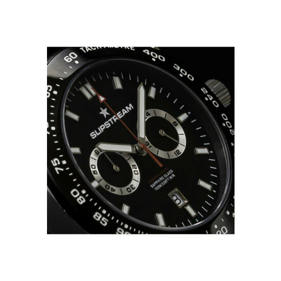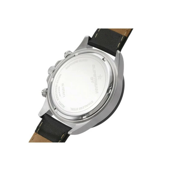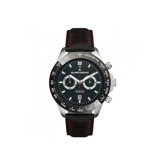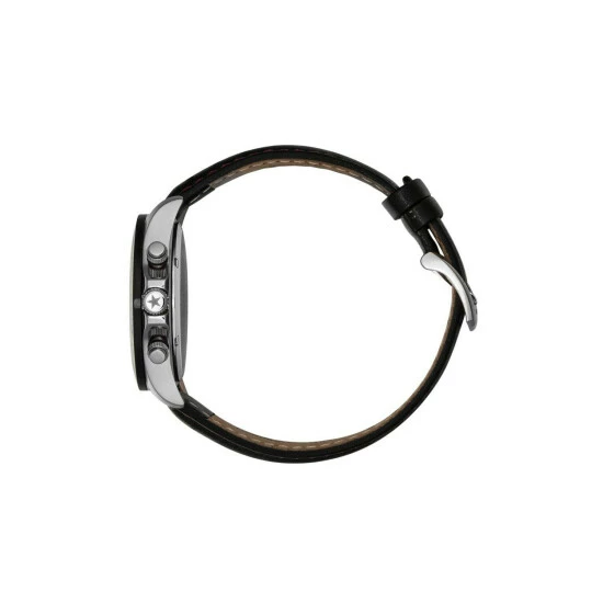 Primary Material : Stainless Steel | Case depth approx : 12.00mm | Case width approx : 42.00mm | Case shape : Circle | Strap type : Leather strap | Strap colour : Black | Clasp type : Strap buckle | Dial colour : Black | Glass : Sapphire | Movement : Quartz | Water Resistance : 100 metres | Includes date function | Guarantee : 2 years