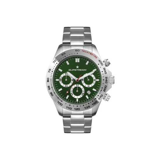 Primary Material : Stainless Steel | Case depth approx : 11.90mm | Case width approx : 42.00mm | Case shape : Circle | Strap type : Metal bracelet | Strap colour : Silver | Clasp type : Push-button Deployment | Dial colour : Green | Glass : Mineral | Movement : Quartz | Movement Source : Japan | Water Resistance : 100 metres | Includes date function | Guarantee : 2 years