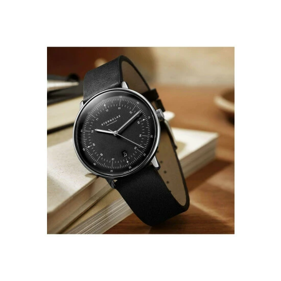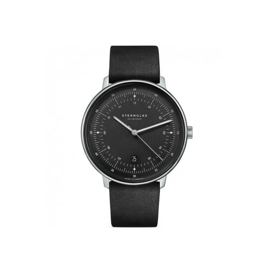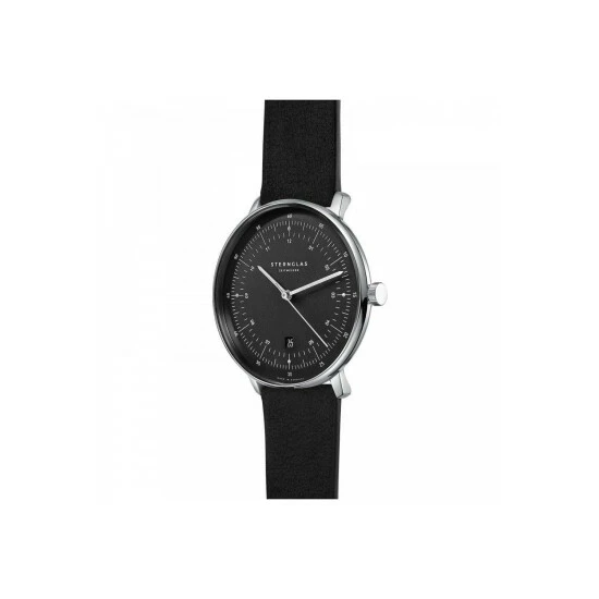 Primary Material : Stainless Steel | Case width approx : 42.00mm | Case shape : Circle | Strap type : Leather strap | Strap colour : Black | Clasp type : Strap buckle | Dial colour : Black | Glass : Sapphire | Movement : Quartz | Movement Source : Swiss | Water Resistance : 50 metres | Includes date function | Guarantee : 2 years
