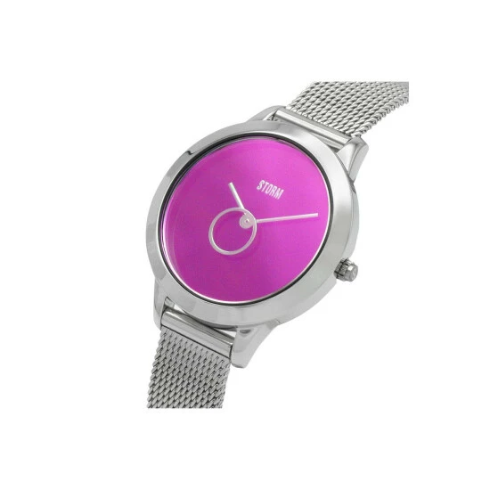 Primary Material : Stainless Steel | Case depth approx : 7.00mm | Case width approx : 30.00mm | Case shape : Circle | Strap type : Mesh Bracelet | Strap colour : Silver | Clasp type : Sliding buckle | Dial colour : Purple | Glass : Mineral | Movement : Quartz | Movement Source : Japan | Water Resistance : 50 metres | Guarantee : 2 years