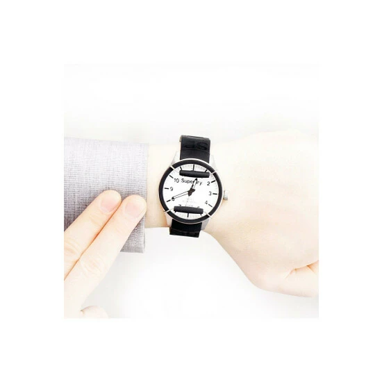 Primary Material : Stainless Steel | Case depth approx : 12.00mm | Case width approx : 45.00mm | Case shape : Circle | Strap type : Rubber Strap | Strap colour : Black | Clasp type : Push-button Deployment | Dial colour : White | Glass : Mineral | Movement : Quartz | Movement Source : Japan | Water Resistance : No | Guarantee : 2 years