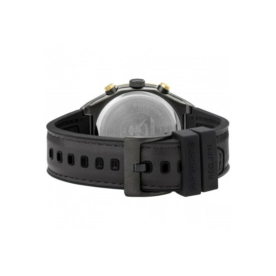Primary Material : Stainless Steel | Case depth approx : 11.00mm | Case width approx : 44.00mm | Case shape : Circle | Strap type : Leather strap | Strap colour : Black | Clasp type : Strap buckle | Dial colour : Black | Glass : Mineral | Movement : Quartz Multifunction | Movement Source : Japan | Water Resistance : 50 metres | Guarantee : 2 years