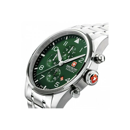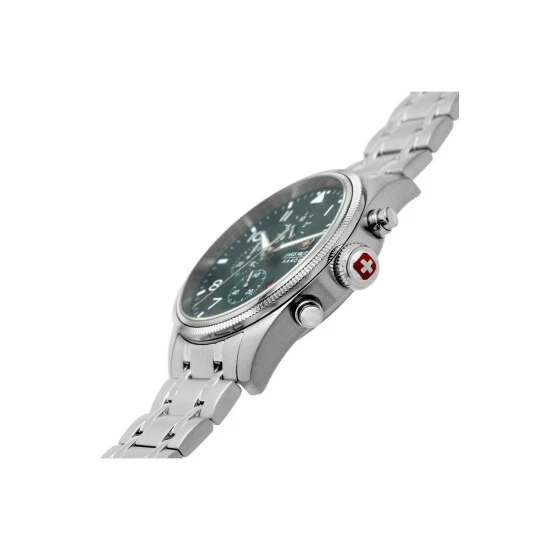 Battery Type : silver oxide | Primary Material : Stainless Steel | Case depth approx : 12.00mm | Case width approx : 43.00mm | Case shape : Circle | Strap type : Metal bracelet | Strap colour : Silver | Clasp type : Deployment | Dial colour : Green | Glass : Sapphire | Movement : Quartz | Movement Source : Swiss | Water Resistance : 100 metres | Guarantee : 3 Years