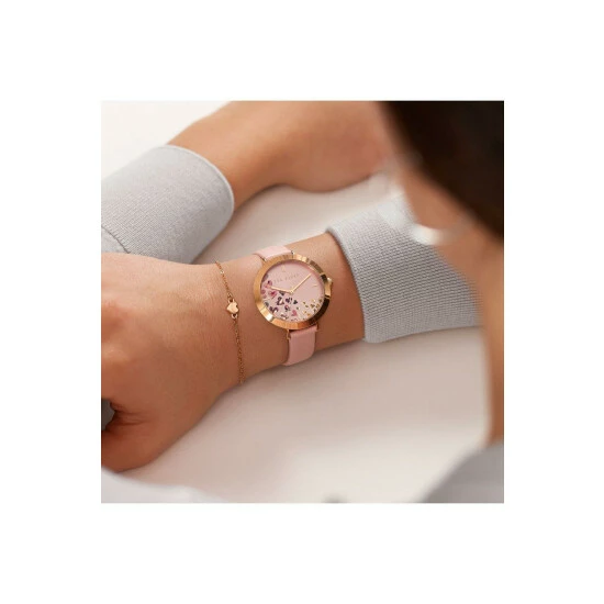 Primary Material : Stainless Steel | Case depth approx : 8.00mm | Case width approx : 34.00mm | Strap type : Leather strap | Strap colour : Pink | Clasp type : Strap buckle | Dial colour : Pink | Glass : Mineral | Movement : Quartz | Water Resistance : 50 metres | Guarantee : 2 years