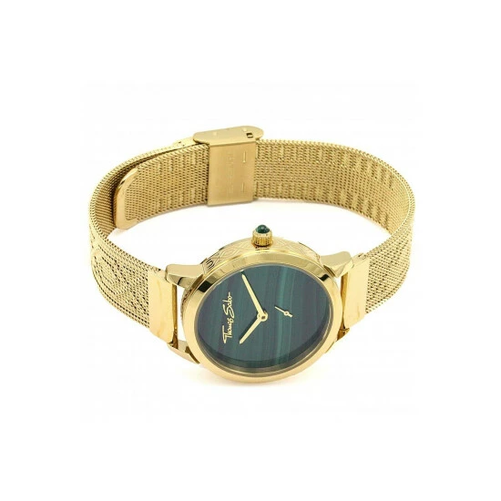 Primary Material : Stainless Steel | Case depth approx : 9.00mm | Case width approx : 33.00mm | Case shape : Circle | Strap type : Metal Bracelet | Strap colour : Gold | Clasp type : Sliding buckle | Dial colour : Green | Movement : Quartz | Water Resistance : 50 metres | Guarantee : 2 years