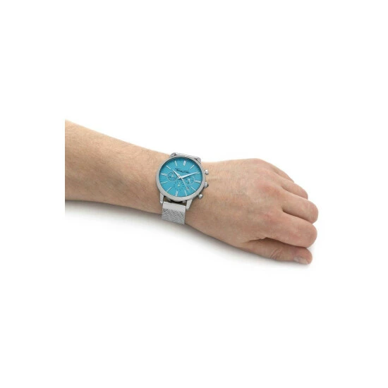 Primary Material : Stainless Steel | Case depth approx : 11.00mm | Case width approx : 22.00mm | Case shape : Circle | Strap type : Mesh Bracelet | Strap colour : Silver | Clasp type : Sliding buckle | Dial colour : Turquoise | Glass : Sapphire Coated | Movement : Quartz | Movement Source : Japan | Water Resistance : 50 metres | Includes date function | Guarantee : 2 years