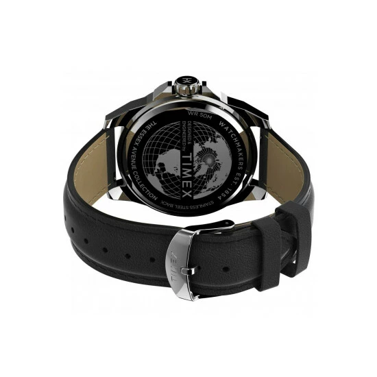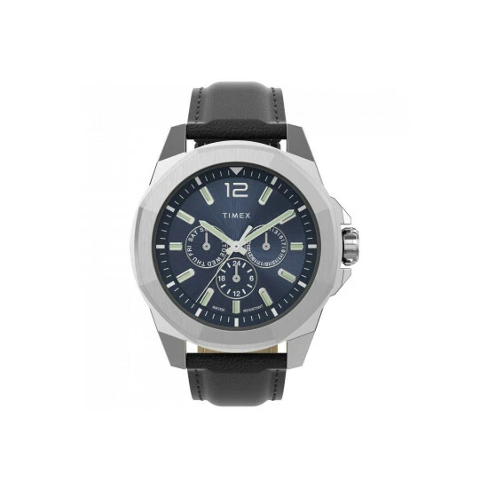 Primary Material : Base metal | Case depth approx : 10.00mm | Case width approx : 44.00mm | Case shape : Circle | Strap colour : Black | Dial colour : Blue | Glass : Mineral | Water Resistance : 50 metres | Guarantee : 2 years