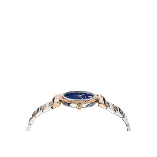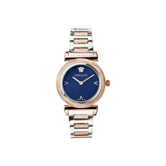 Primary Material : Plated Stainless Steel | Case depth approx : 7.40mm | Case width approx : 35.00mm | Case shape : Circle | Strap type : Metal bracelet | Strap colour : Gold | Clasp type : Butterfly | Dial colour : Blue | Glass : Anti-Reflective Sapphire Crystal | Movement : Quartz | Movement Source : Swiss | Water Resistance : 50 metres | Guarantee : 2 years