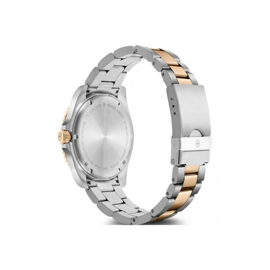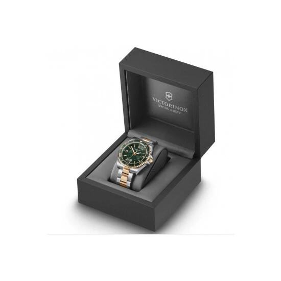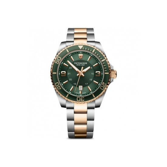 Primary Material : Stainless Steel | Case depth approx : 11.40mm | Case width approx : 43.00mm | Case shape : Circle | Strap type : Metal bracelet | Strap colour : Two tone | Clasp type : Fold-over Deployment | Dial colour : Green | Glass : Anti-Reflective Sapphire Crystal | Movement : Quartz | Movement Source : Swiss | Water Resistance : 100 metres | Guarantee : 5 Years